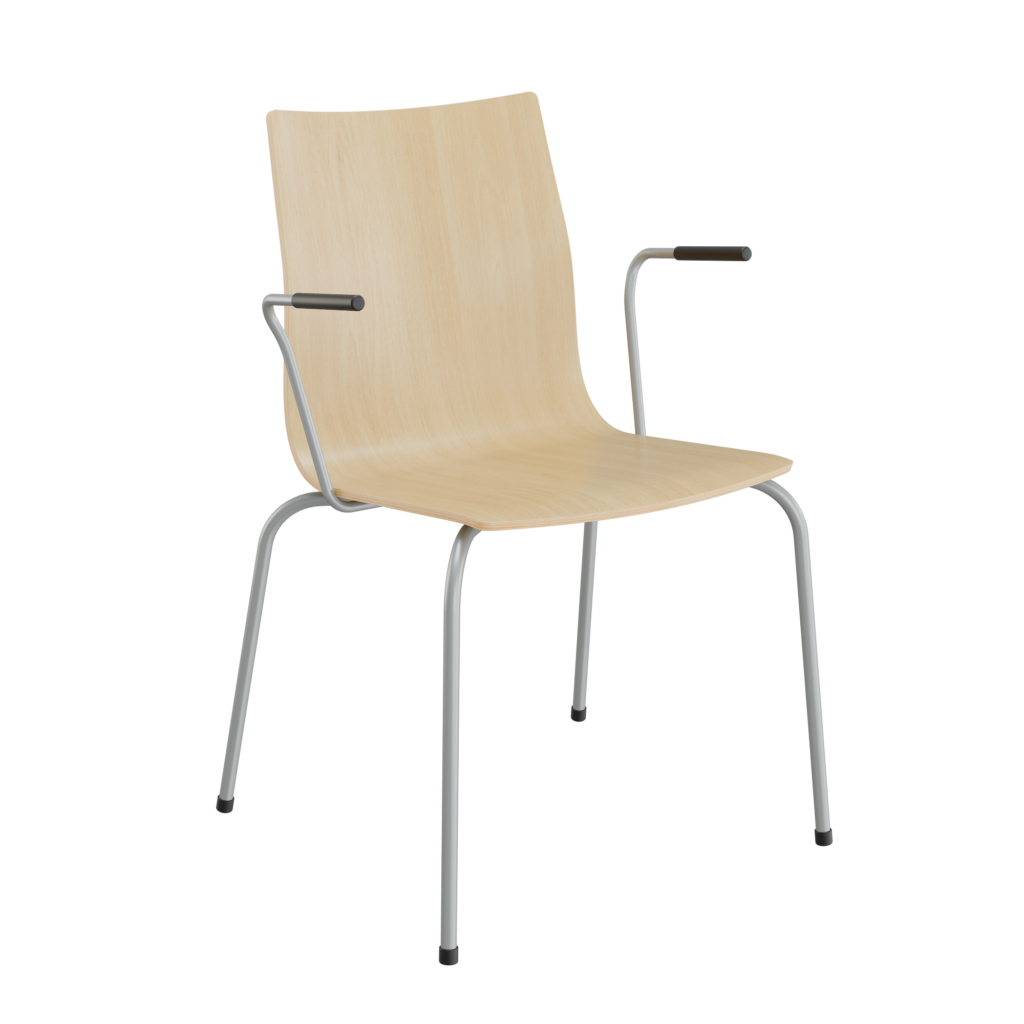 Trevlig har mjukt fjädrande rygg för bästa sitt komfort. Stativ i krom, vit, svart eller silverlackerat. Trevlig finns utan armstöd eller med de 2 armstöden AL2 och Karm K1.