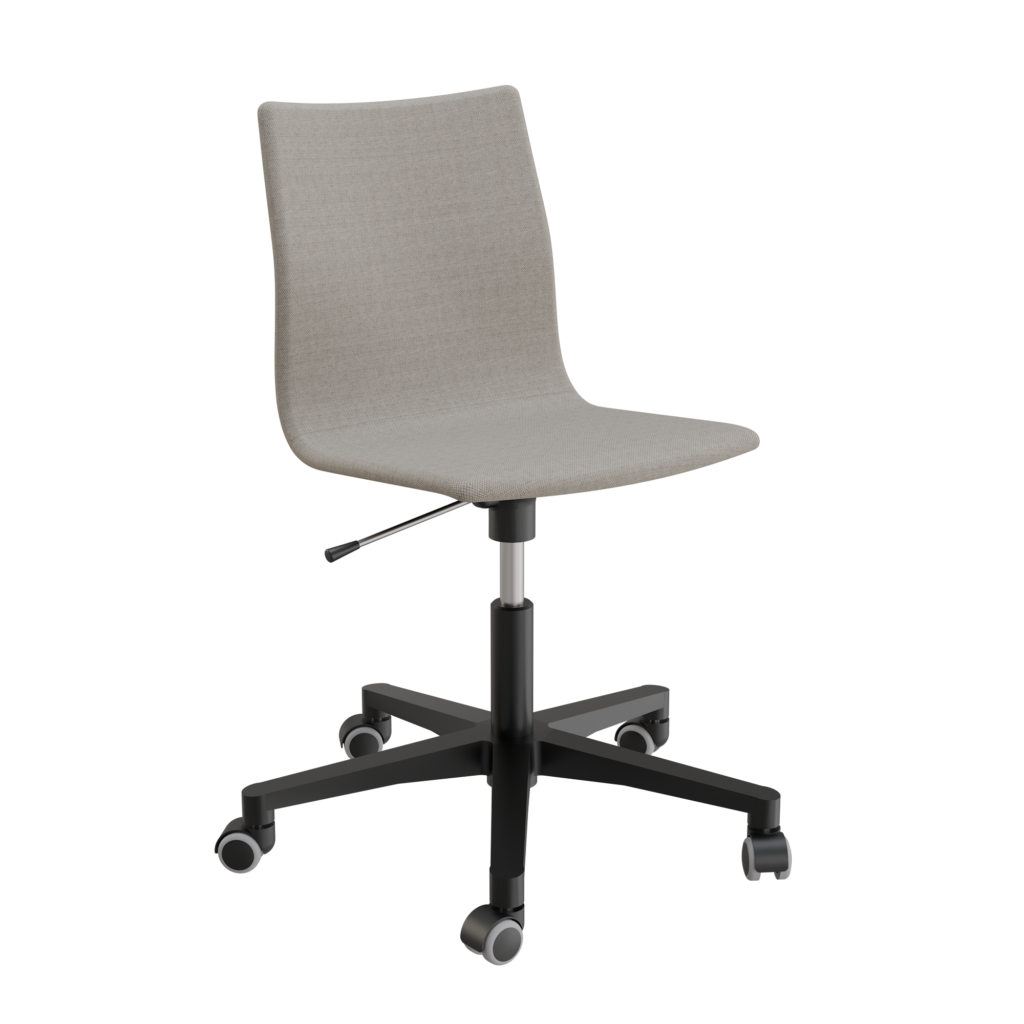 Trevlig har mjukt fjädrande rygg och stoppning med 20 mm högkvalitativt HR kallskum för bästa sitt komfort. 5-vingat kryssstativ finns i utförande med svart nylon alternativt glanspolerad pressgjuten aluminium. Trevlig finns utan armstöd eller med de 2 armstöden AL2 och Karm K1.